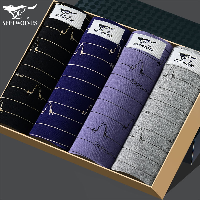 【产品名称:七匹狼男士内裤冰丝平角裤窄边舒适中腰中年短裤裤衩底裤四角夏天】