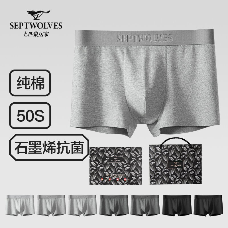 【产品名称:七匹狼男士内裤纯棉男生抗菌裆平角裤宽松大码运动透气四角短裤头】