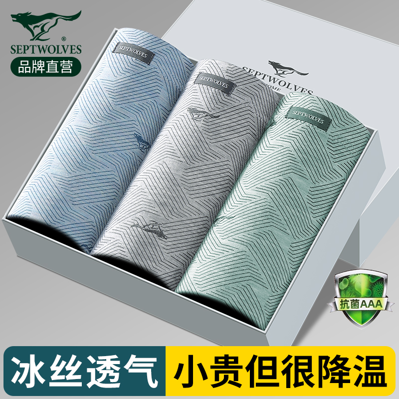 【产品名称:七匹狼男士内裤男生冰丝四角裤男式运动大码莫代尔平角短裤头裤衩】