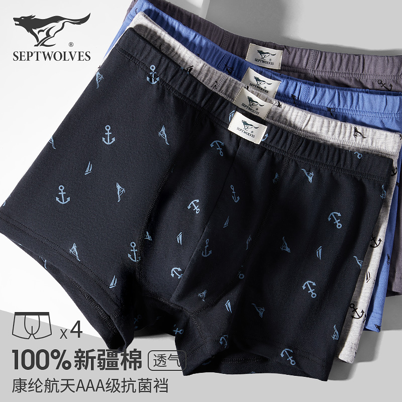 【产品名称:七匹狼纯棉男士内裤男平角裤宽松透气男生夏季薄款抗菌四角裤大码】