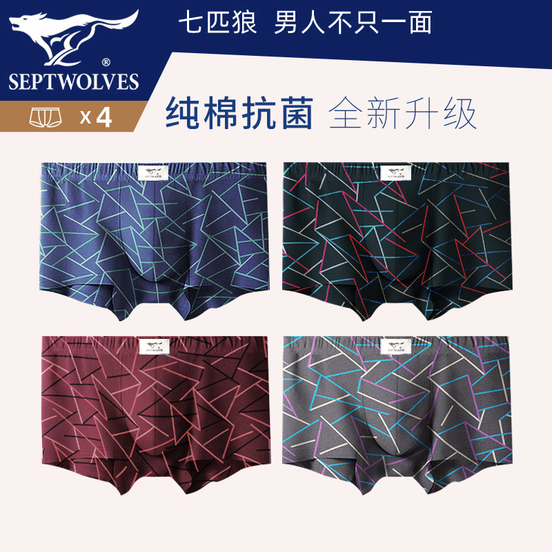 【产品名称:七匹狼纯棉男士内裤男款平角裤宽松四角短裤头印花肉土爸爸中老年】
