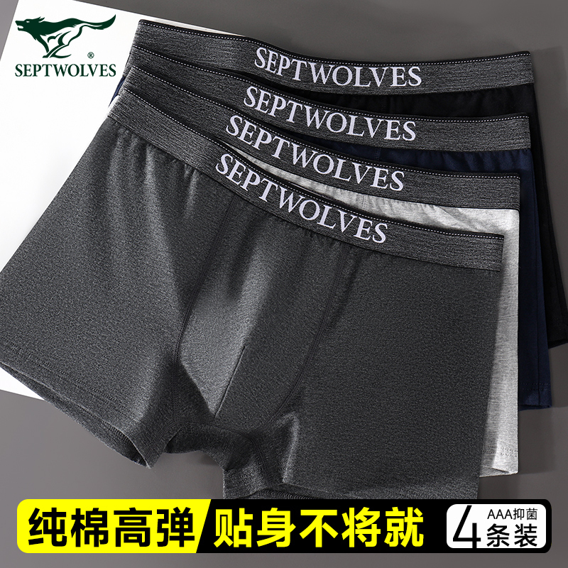 【产品名称:七匹狼男士内裤男生夏季纯棉平角裤全棉宽松透气四角裤大码短裤头】