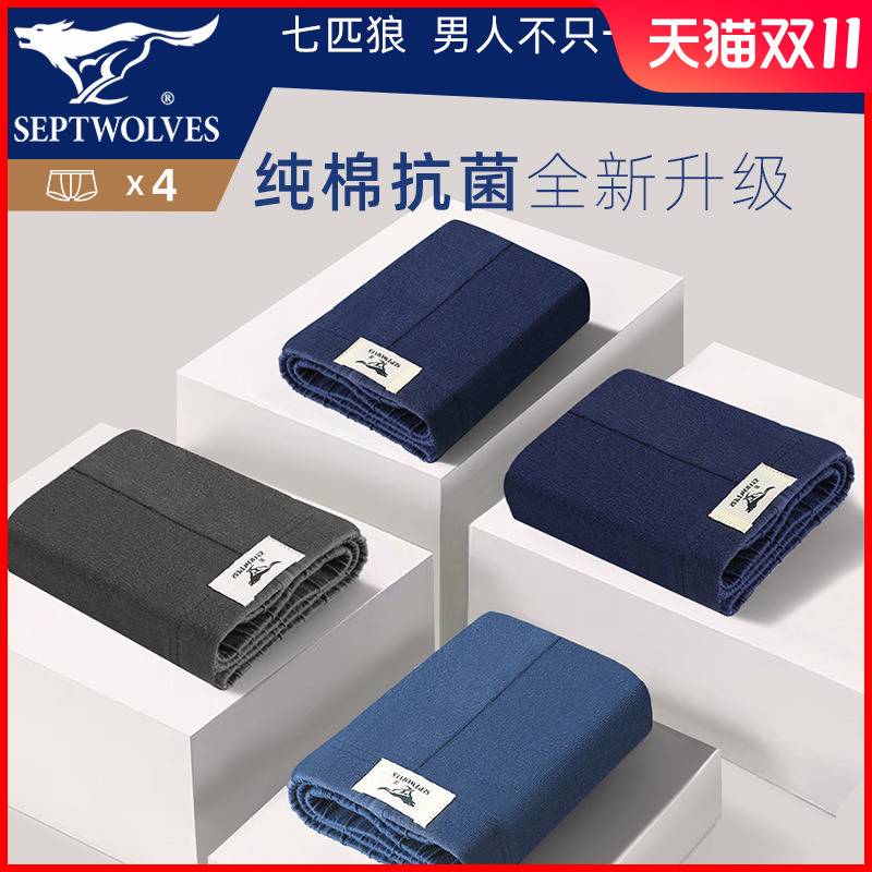 【产品名称:七匹狼男士内裤男生纯棉抗菌吸汗透气四角裤大码简约100%全棉短裤】