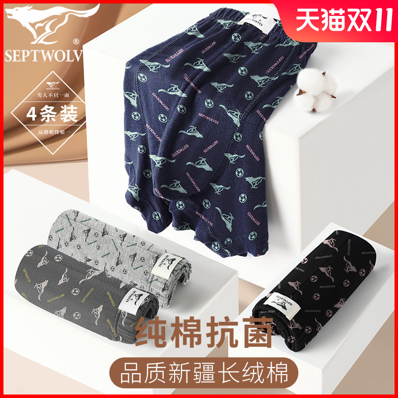 【产品名称:七匹狼内裤男士纯棉印花抗菌透气四角裤时尚2023新款平角底裤裤头】