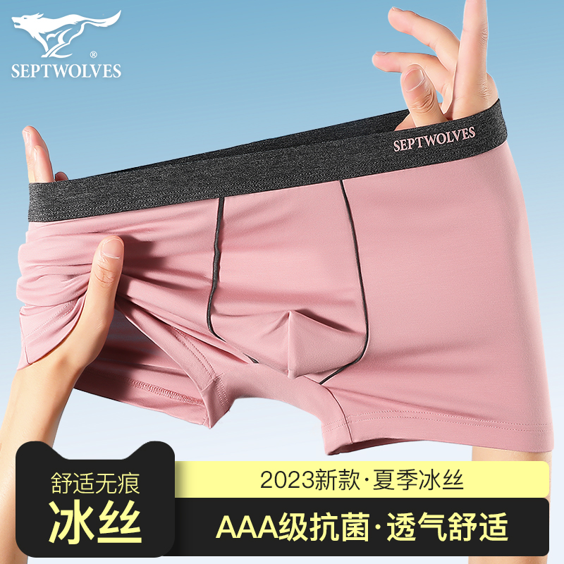 【产品名称:七匹狼男式内裤男生四角2023新款冰丝抗菌无痕青少年平角夏季薄款】