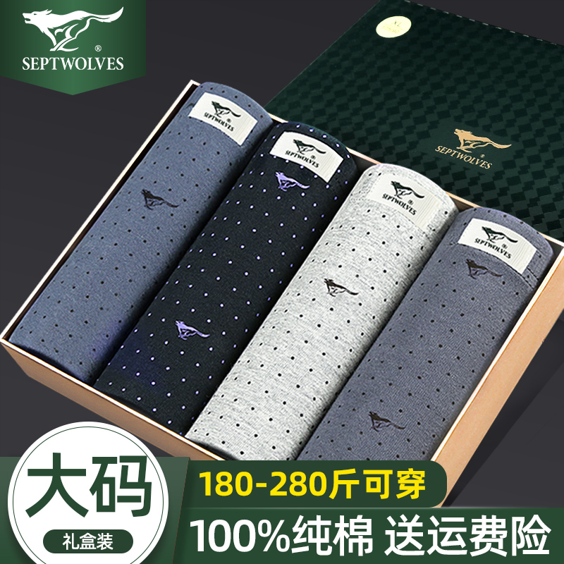 【产品名称:七匹狼男士内裤纯棉大码宽松加大加肥佬平角裤胖子200斤四角透气】