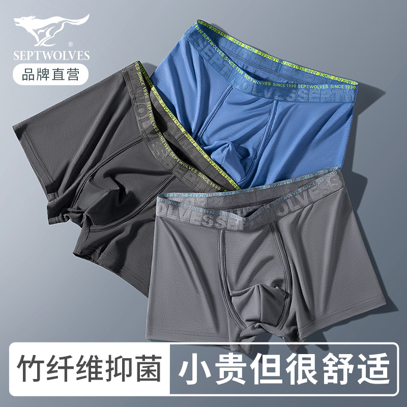【产品名称:七匹狼竹浆纤维男生抗菌裤衩男款式四角短裤冰丝男士内裤平角裤头】