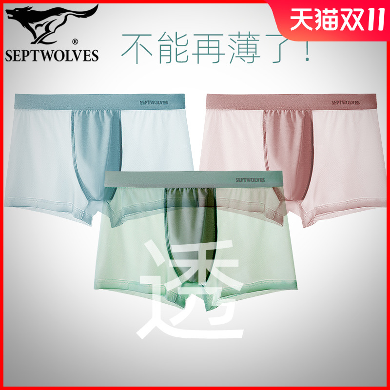 【产品名称:七匹狼男士内裤男生网纱冰丝透气抗菌网眼眀筋平角男人四角裤礼盒】
