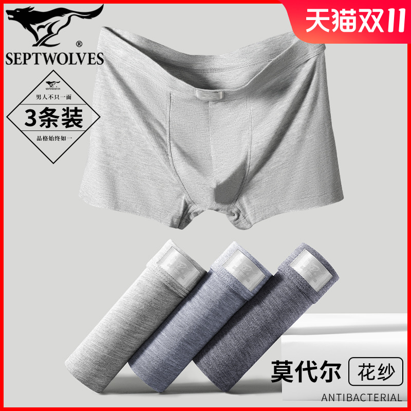 【产品名称:七匹狼冰丝内裤男士莫代尔凉感抗菌透气花纱夏季宽腰带舒服四角裤】