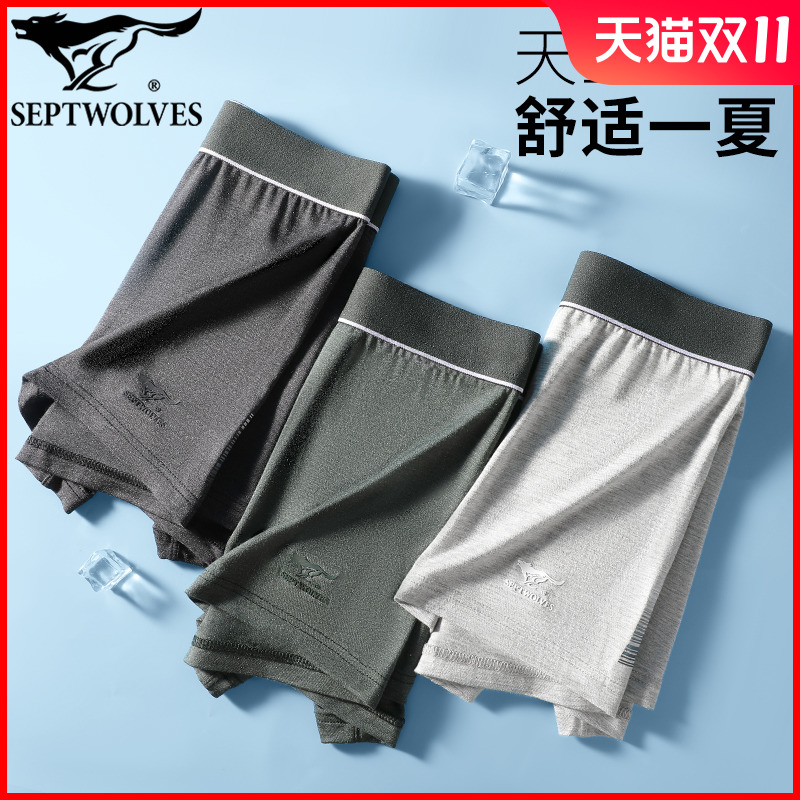 【产品名称:七匹狼内裤男士抗菌花纱高级感2023新款透气薄款弹力腰带平角短裤】