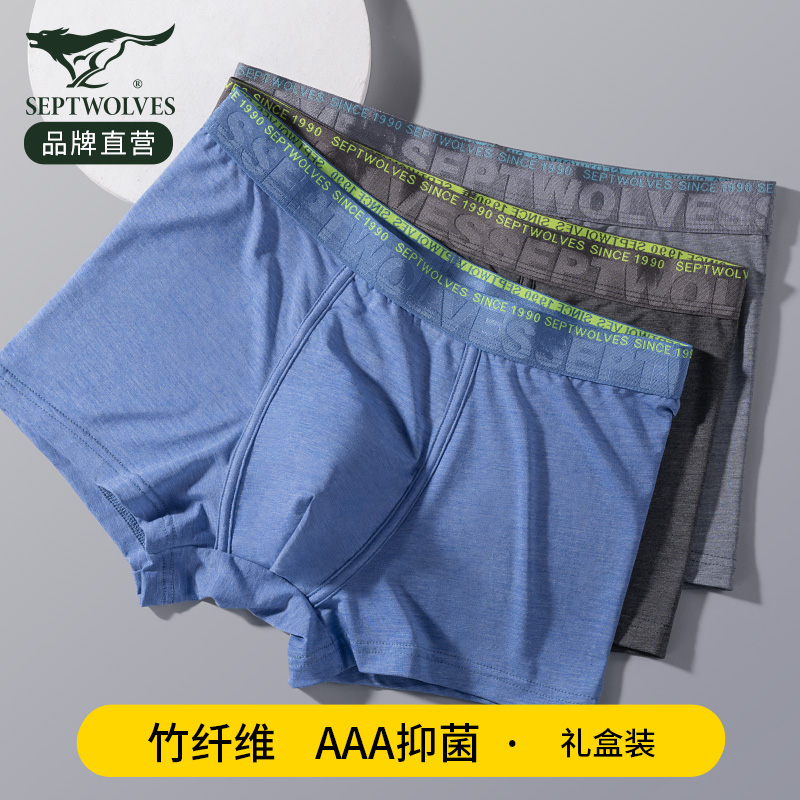 【产品名称:七匹狼冰丝男士内裤平角裤头竹浆纤维男生抗菌裤衩男款式四角短裤】