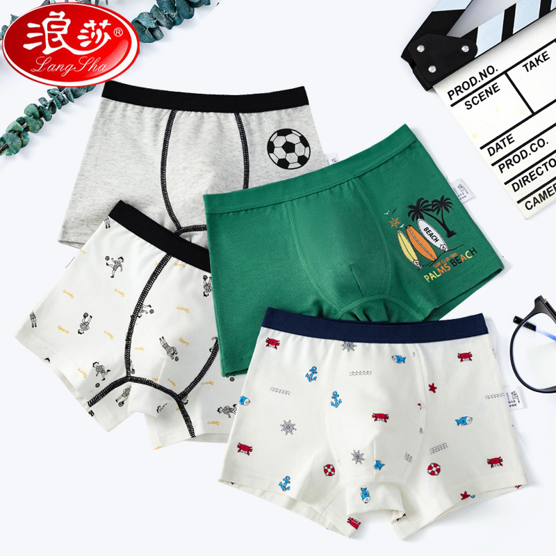 【产品名称:浪莎儿童内裤全棉中大男童纯棉平角裤全棉男孩学生小宝宝四角短裤】