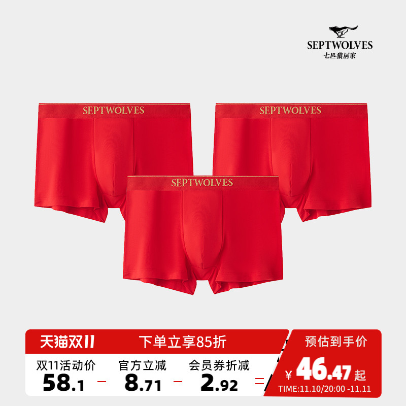 【产品名称:七匹狼大红内裤男士本命年四角裤透气平角裤宽松裤衩鸿运喜庆短裤】