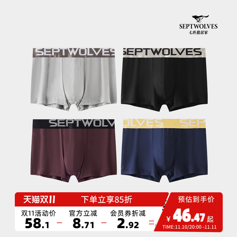 【产品名称:七匹狼莫代尔内裤男士冰丝四角裤男生内衣平角裤运动裤头透气短裤】
