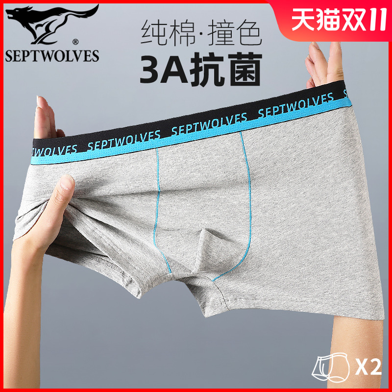 【产品名称:七匹狼男士内裤40S纯棉抗菌透气秋季秋天撞色明筋短裤男人底裤头2】