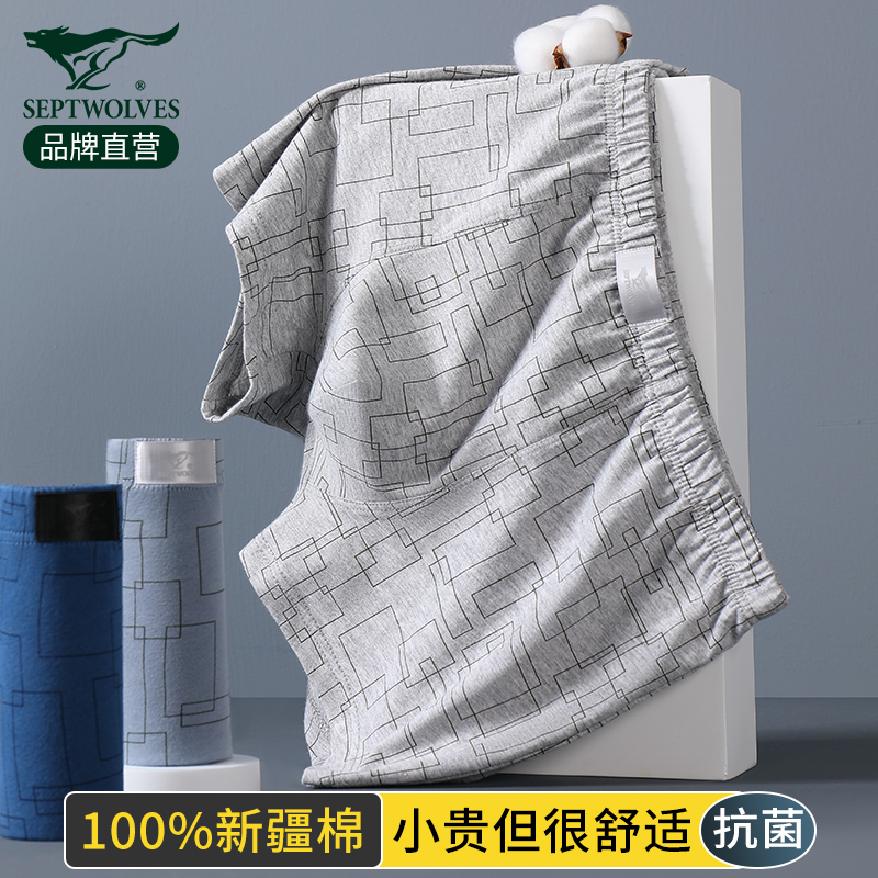 【产品名称:七匹狼男士内裤男纯棉抗菌裆平角裤夏季薄款裤头男生运动透气短裤】