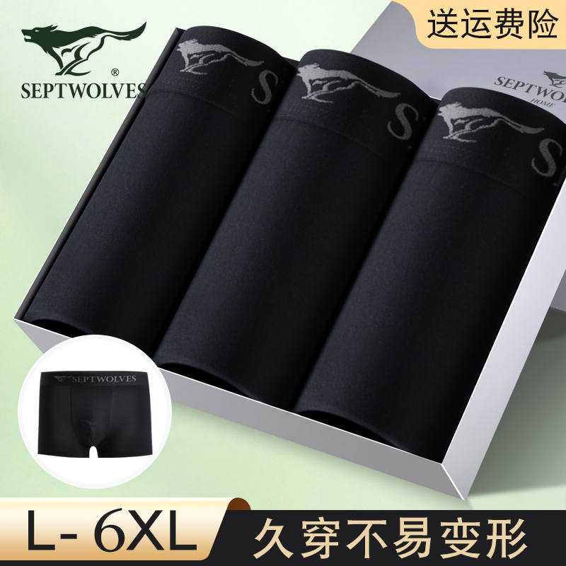 【产品名称:七匹狼黑色内裤男士四角短裤头男生纯棉秋季抗菌全棉底裤平角裤】