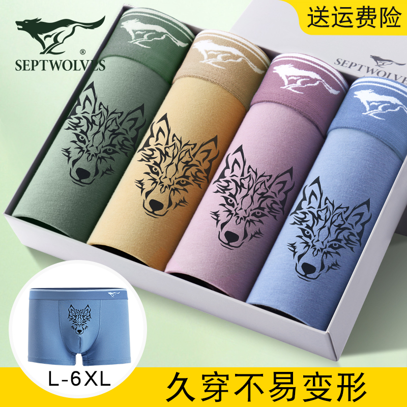 【产品名称:七匹狼男士内裤男平角裤冰丝大码透气男生短裤头莫代尔潮流四角裤】