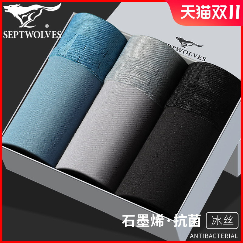 【产品名称:七匹狼男士内裤男生冰丝石墨烯抗菌导湿纯色2023新款莫代尔四角裤】