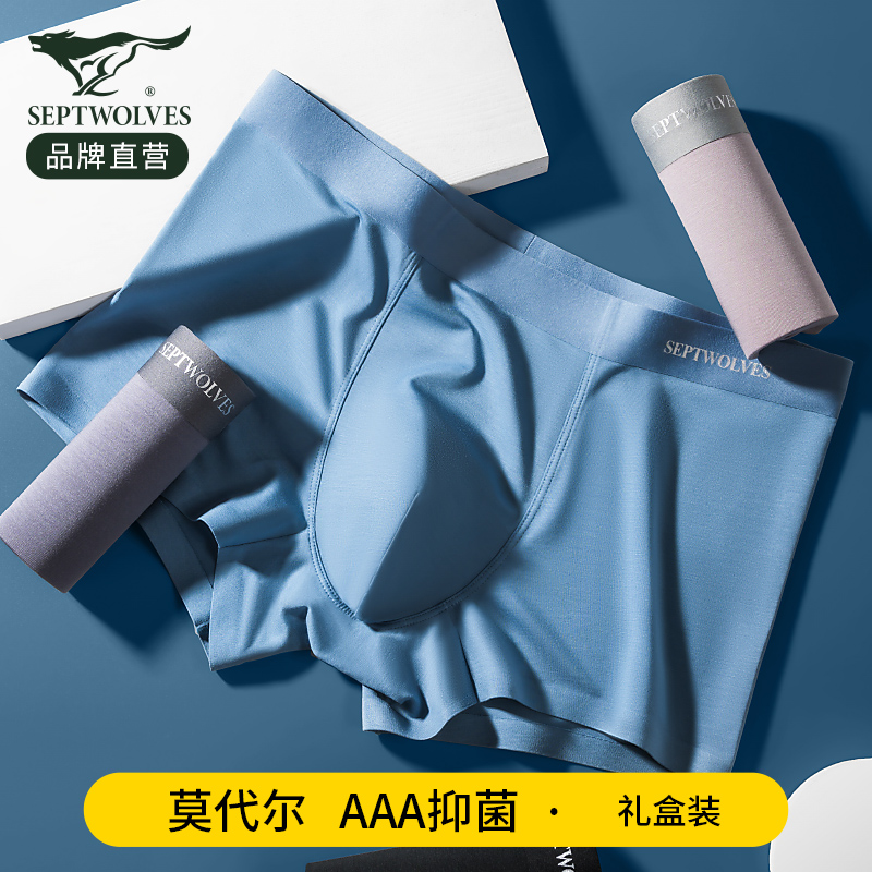 七匹狼内裤男士冰丝莫代尔平角抗菌短裤夏季薄款速干男人四角裤头