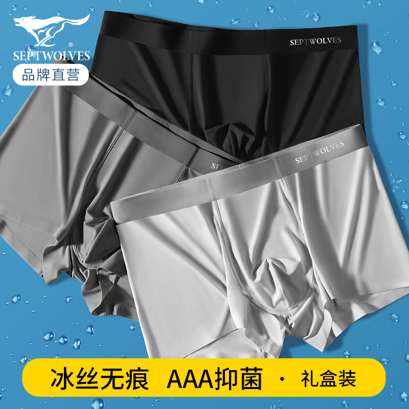 【产品名称:七匹狼内裤男士夏季薄款冰丝无痕莫代尔透气平角男孩男生四角短裤】