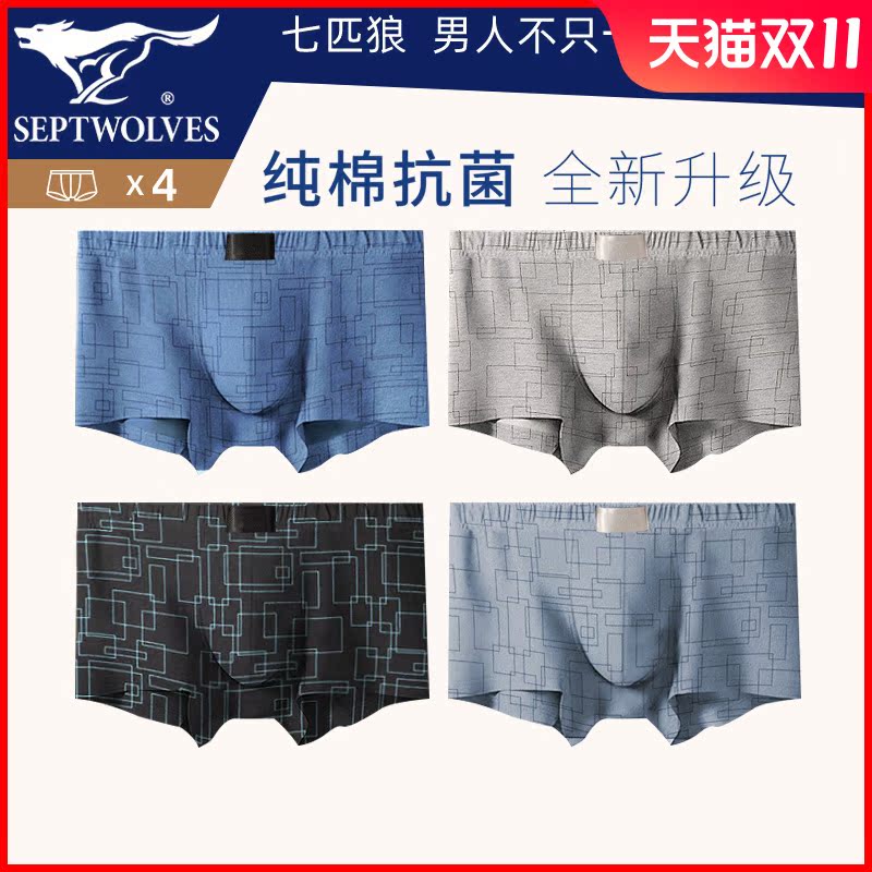 【产品名称:七匹狼男士内裤男生纯棉抗菌印花平角四角大码100%全棉透气花裤衩】