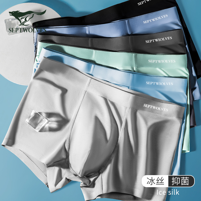 【产品名称:七匹狼内裤男士夏季薄款冰丝无痕莫代尔透气平角男孩男生四角短裤】