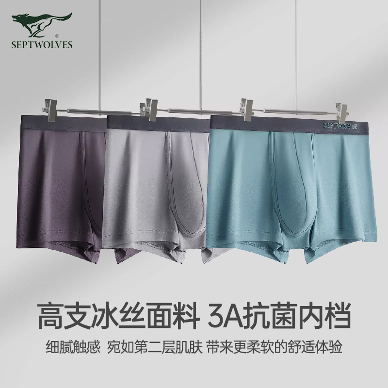 【产品名称:七匹狼男士内裤莫代尔平角裤男U凸性感透明中腰冰丝四角裤礼盒装】