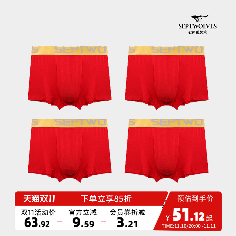 【产品名称:七匹狼冰丝内裤男士大红平角裤本命年短裤鸿运裤头男生透气四角裤】