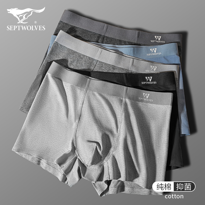 【产品名称:七匹狼男士内裤夏季薄款纯棉抗菌男生四角短裤头全棉无痕平角裤衩】