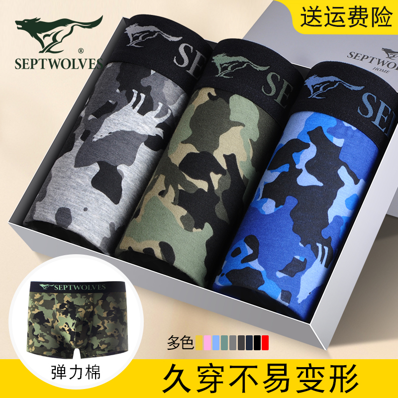 【产品名称:七匹狼男士内裤男生四角短裤头秋季透气纯棉迷彩个性平角底裤男款】