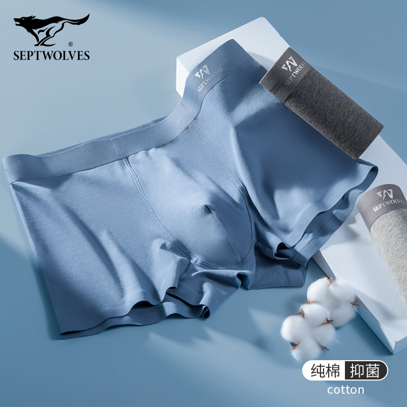 【产品名称:七匹狼男士纯棉内裤男生四角裤底裤夏季薄款抗菌透气短裤平角裤头】