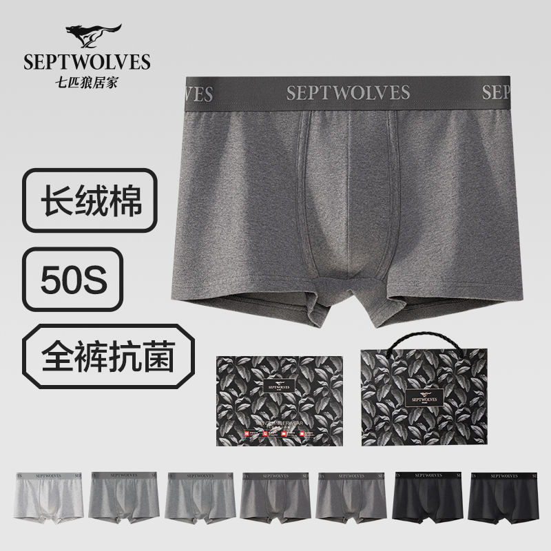 【产品名称:七匹狼内裤男士四角纯棉透气大码抗菌男生运动宽松平角短裤头男款】