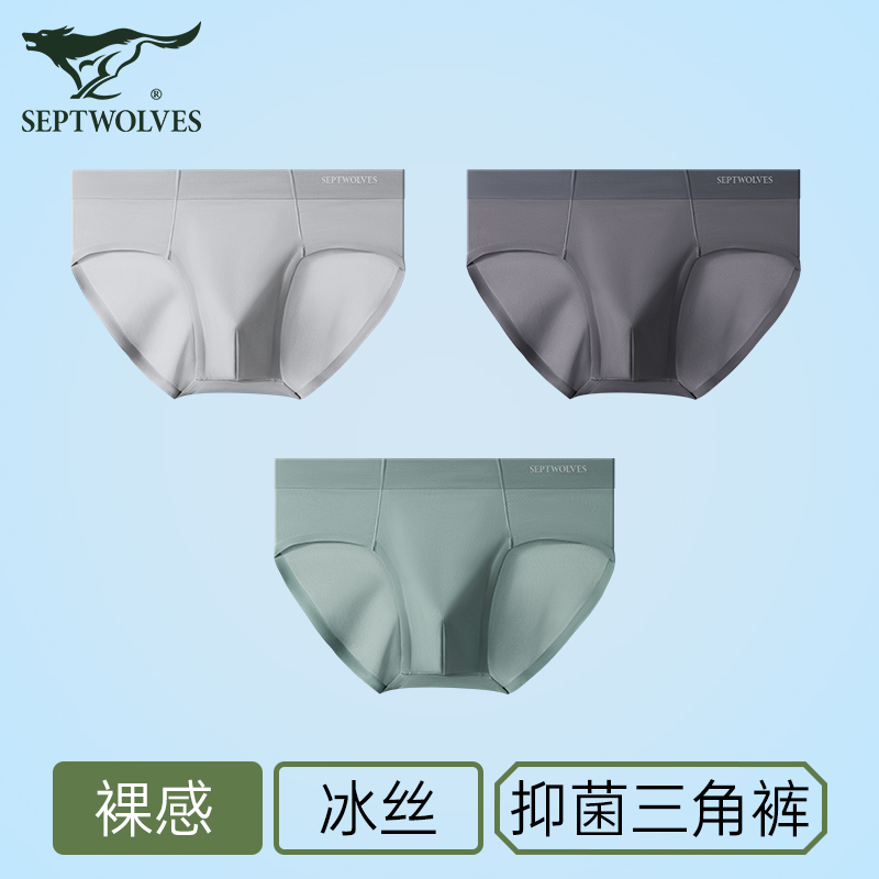 【产品名称:七匹狼男士内裤三角裤夏季薄款透明性感冰丝莫代尔凉感无痕短裤衩】