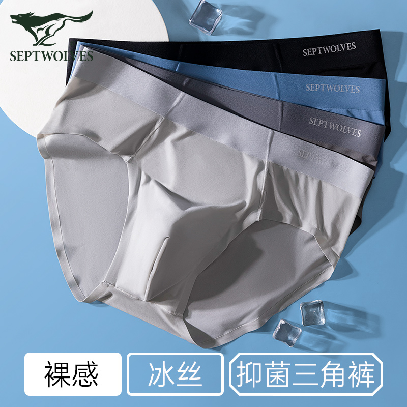 【产品名称:七匹狼男士内裤三角裤冰丝莫代尔无痕透气超薄款短裤夏季男生裤头】