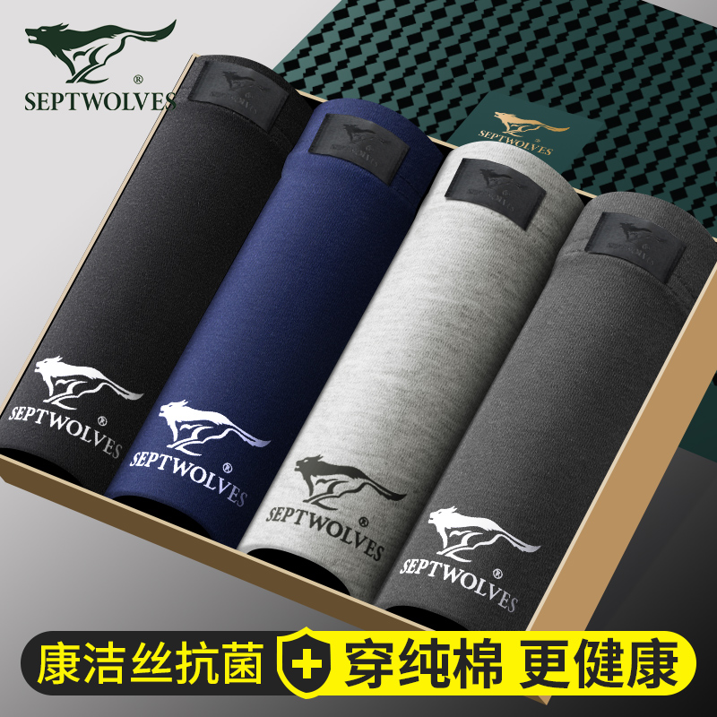 【产品名称:七匹狼官方正品男士内裤纯棉平角裤全棉短裤宽松透气裤头大码裤衩】