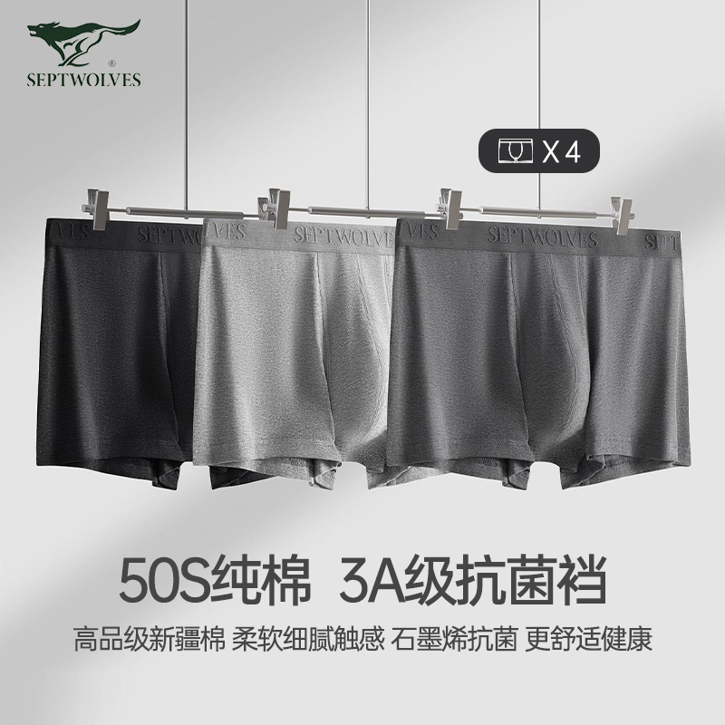【产品名称:七匹狼男士内裤纯棉四角裤头全棉平角裤衩透气底裤男生款运动短裤】