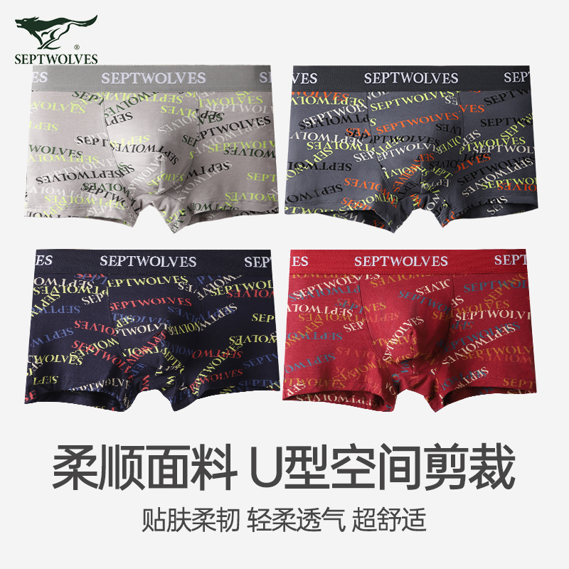【产品名称:七匹狼男士内裤平角裤莫代尔短裤衩青年男生舒适抗菌高弹内裤男款】