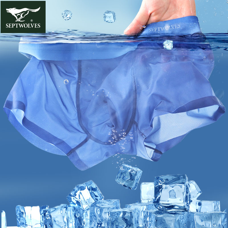 【产品名称:七匹狼男士夏季冰丝内裤透气平角微透清凉爽锦纶四角无痕性感短裤】