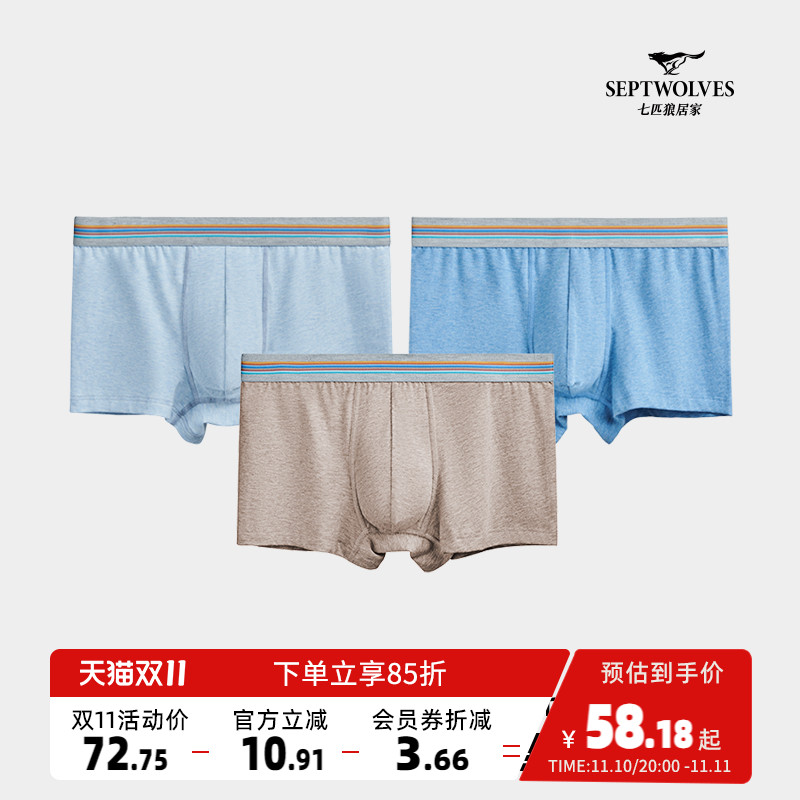 【产品名称:七匹狼纯棉内裤秋冬季男士运动四角裤透气平角裤弹力短裤男生裤衩】