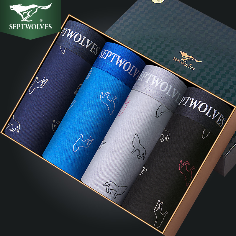 【产品名称:七匹狼内裤男夏天透气四角裤棉质平角裤裤头夏季薄款透气裤衩底裤】