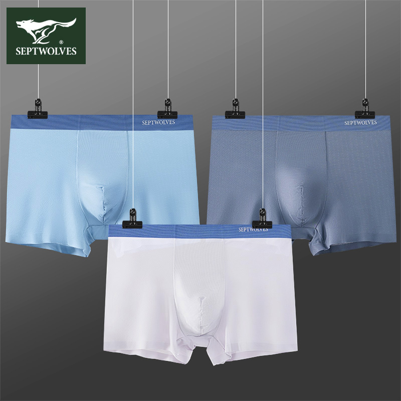 【产品名称:七匹狼男士内裤透气夏天网眼无痕平角夏季超薄性感半透明冰丝短裤】