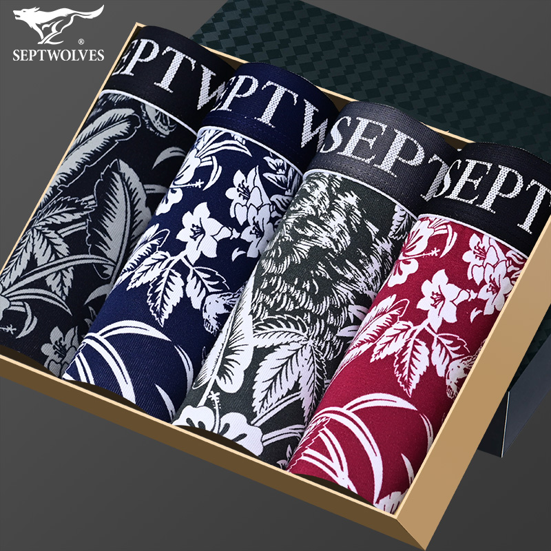 【产品名称:七匹狼男士内裤平角印花舒适纯棉裤弹力平脚男裤短裤衩子秋季内衣】