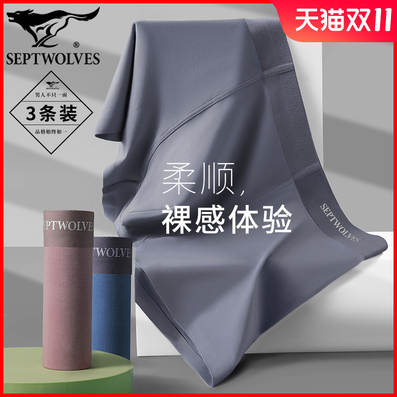 【产品名称:七匹狼莫代尔内裤男士冰丝四角抗菌无痕吸汗透气2023新款平角短裤】
