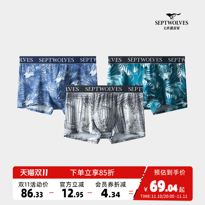 【产品名称:七匹狼内裤男士冰丝平角裤明筋印花薄款运动四角短裤透气裤衩春秋】