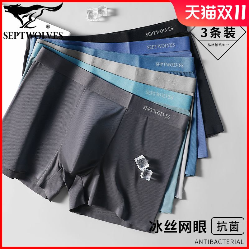 【产品名称:七匹狼锦纶冰丝内裤男士石墨烯抗菌导湿无痕网眼眀筋四角裤送老公】