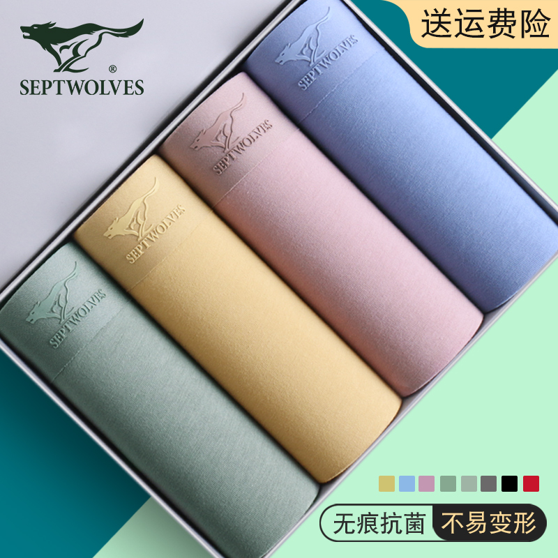 【产品名称:七匹狼男士内裤男生平角裤头纯棉无痕抗菌透气潮流底裤衩四角短裤】