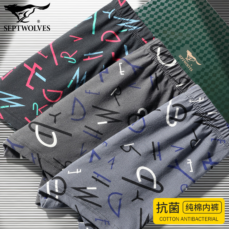 【产品名称:七匹狼男士纯棉内裤男生抗菌平角裤全棉透气四角短裤头2022年新款】