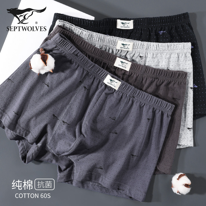 【产品名称:七匹狼纯棉男士抗菌内裤男生平角裤四角大码透气短裤头2022年新款】