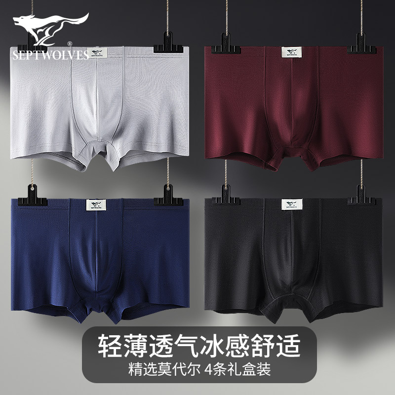 【产品名称:七匹狼男士内裤男冰丝莫代尔男生2022年新款透气平角裤四角短裤头】